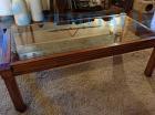 - TAVOLO DA CAFFE' RETTANGOLARE CON PIANI IN VETRO E TELAIO IN LEGNO